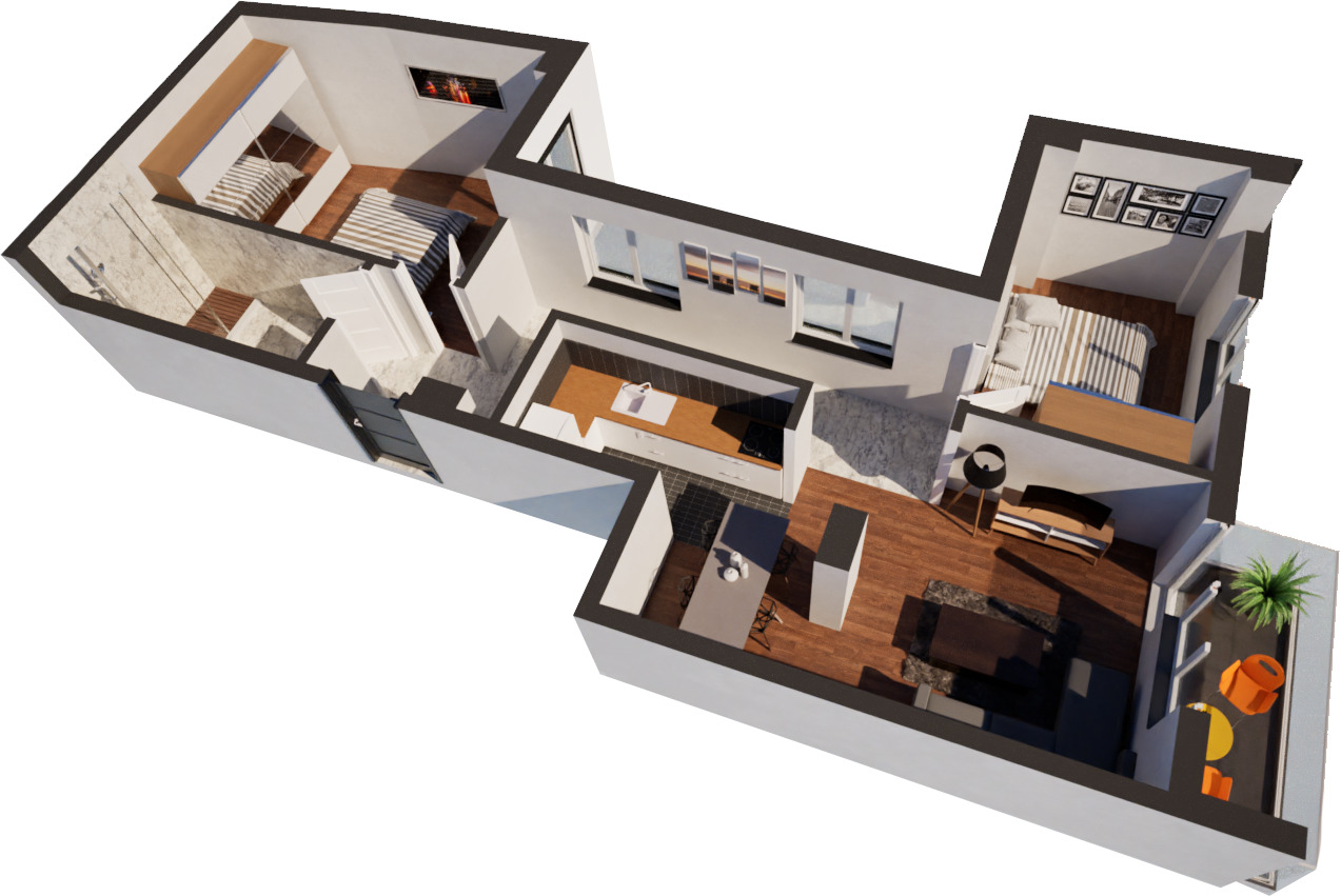 | 2. | Dnevna soba sa kuhinjom i trpezarijom (tarket / keramičke pločice) | 23.71 m2 |